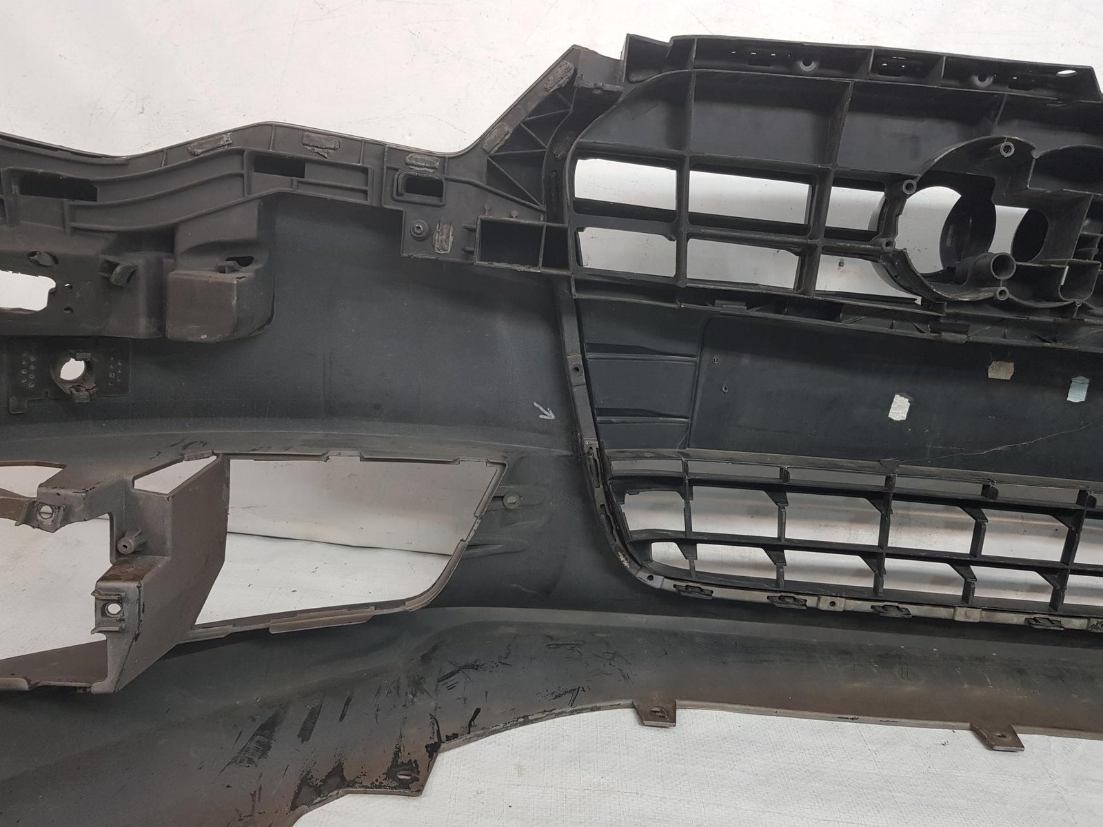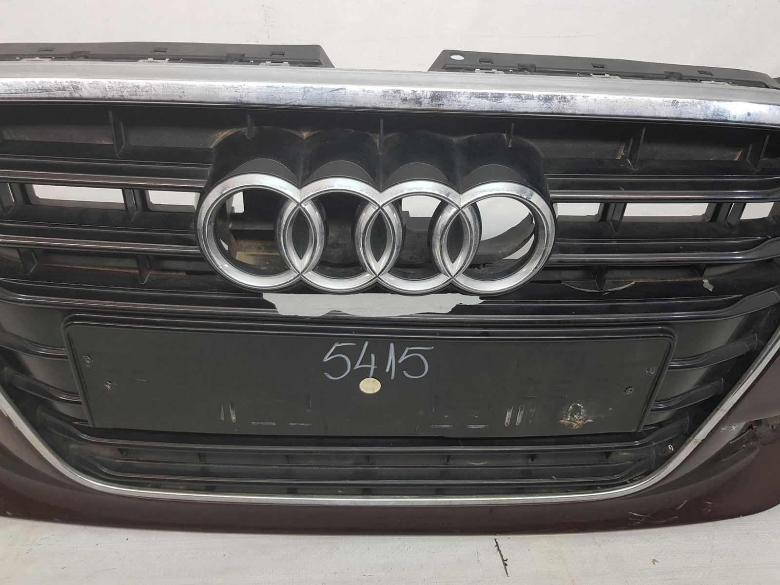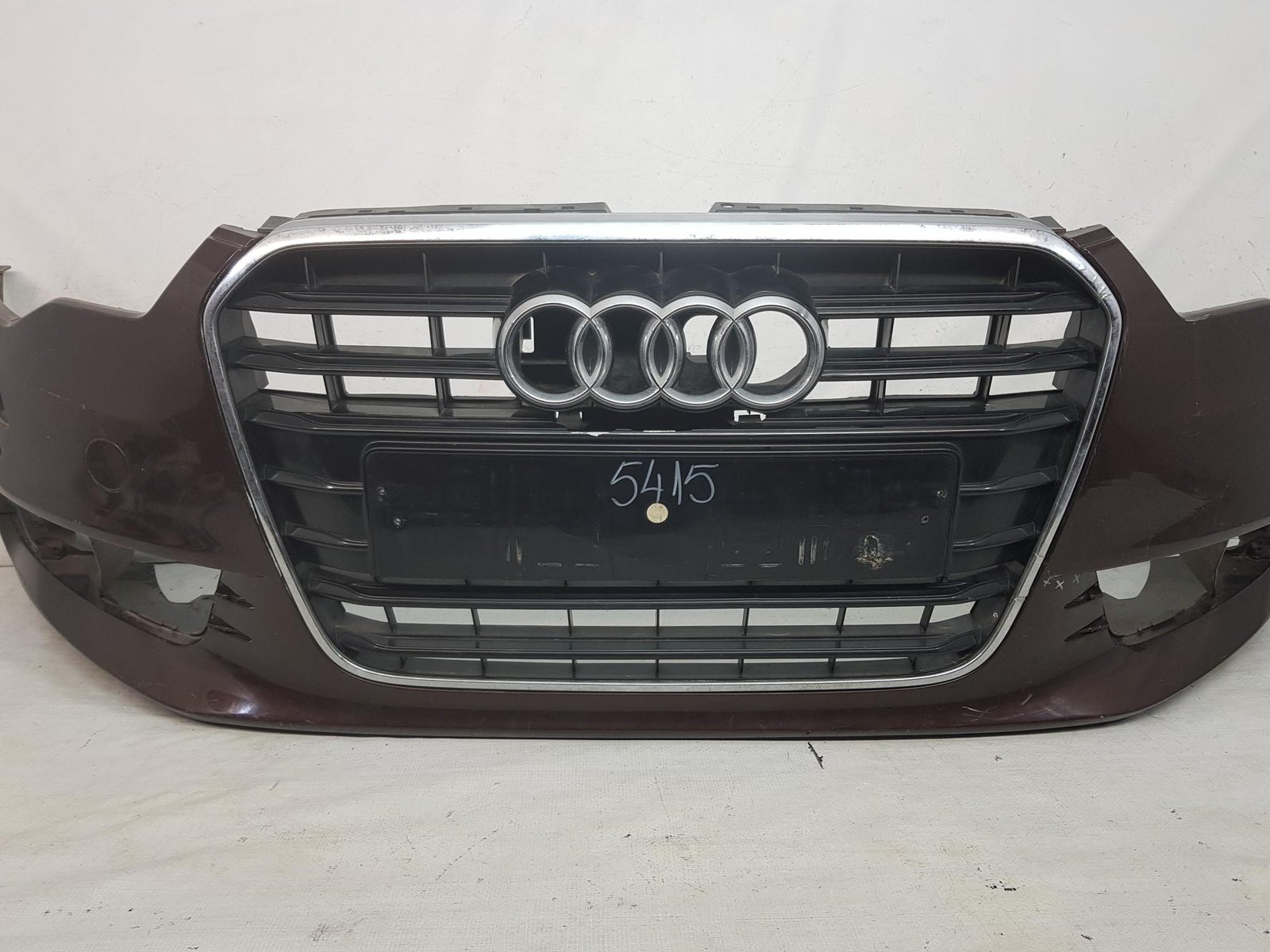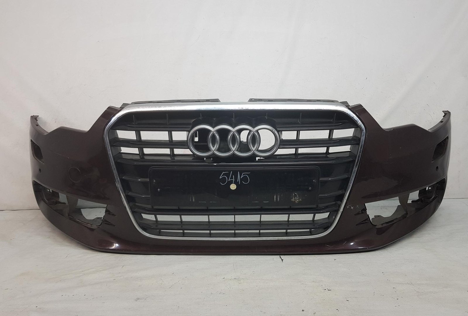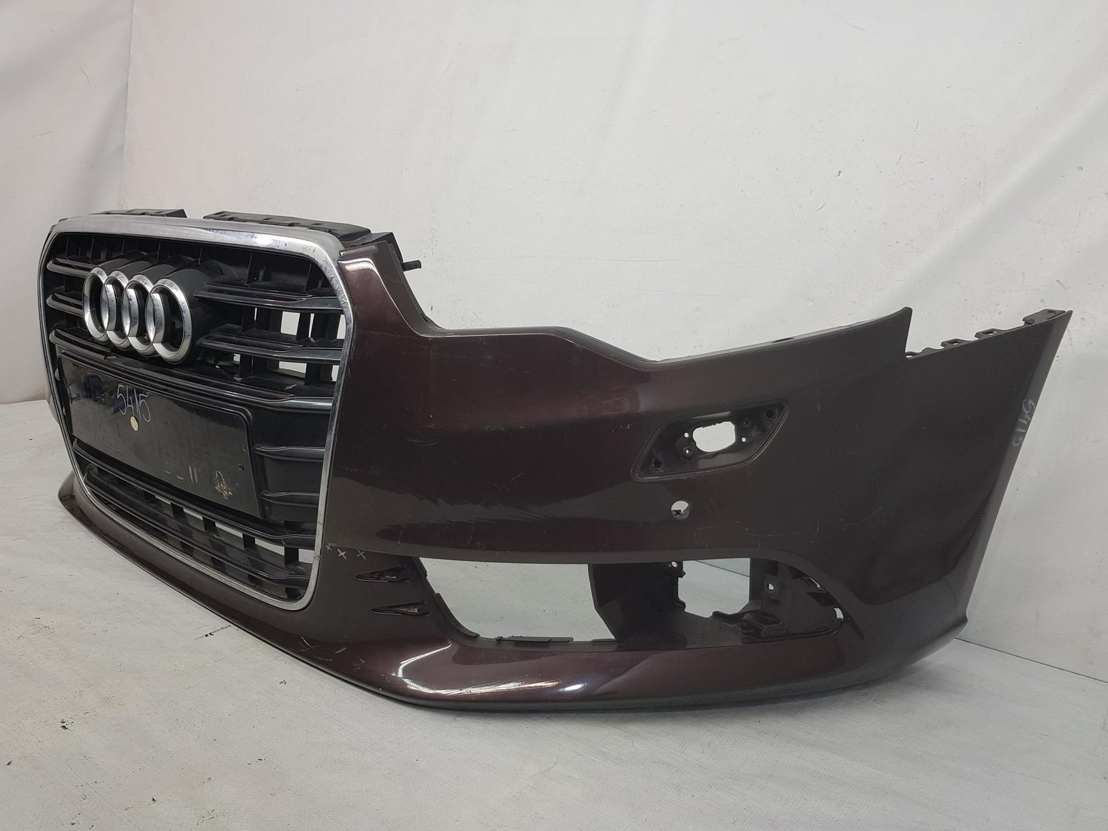 Bara fata Audi A6 4G C7 cod OE 4G0807437 an fab 2011 2012 2013, cu 4 gauri senzori parcare si spalatori far, grila este sparta conform poze, se ofera impreuna cu bara.