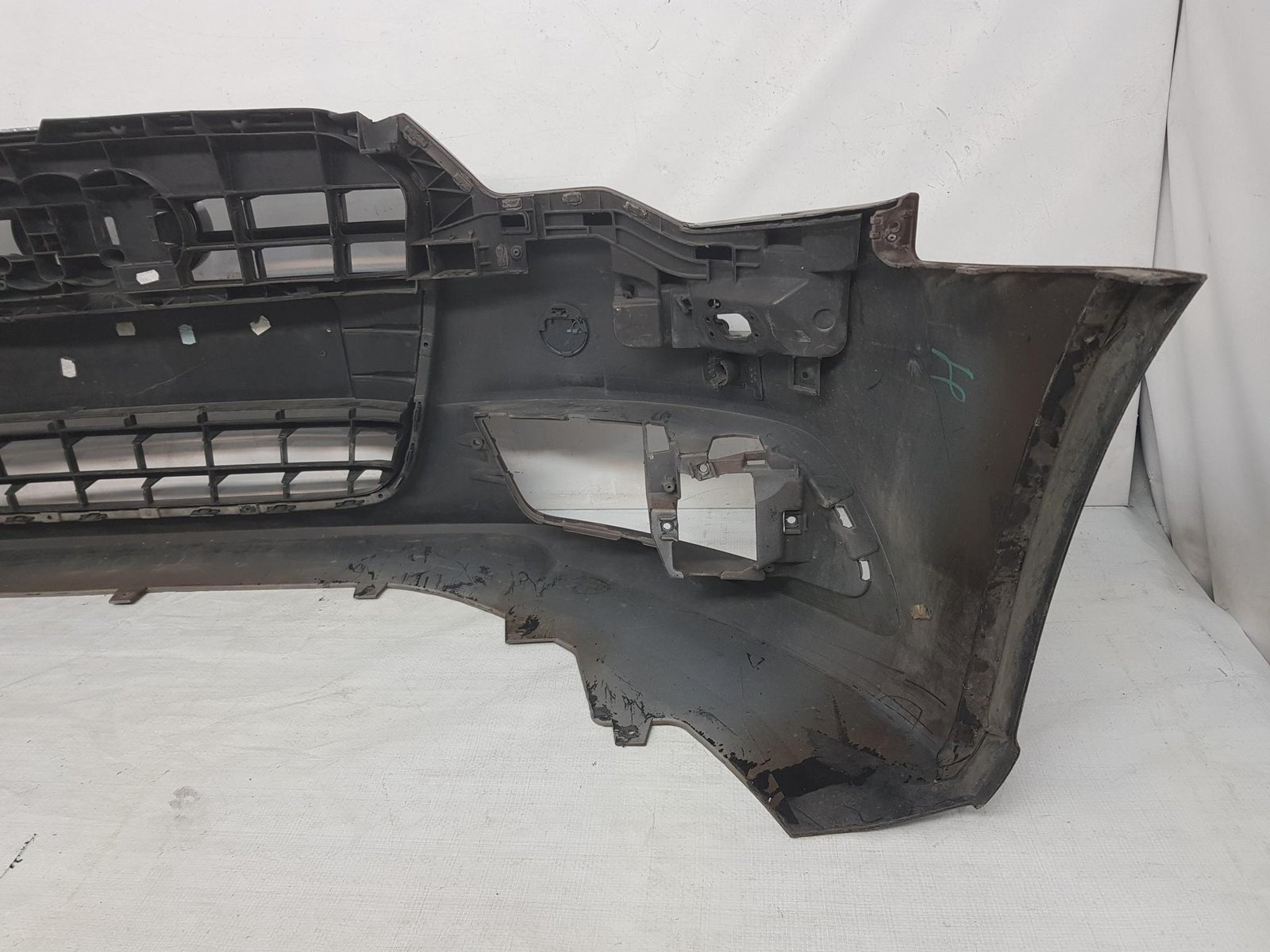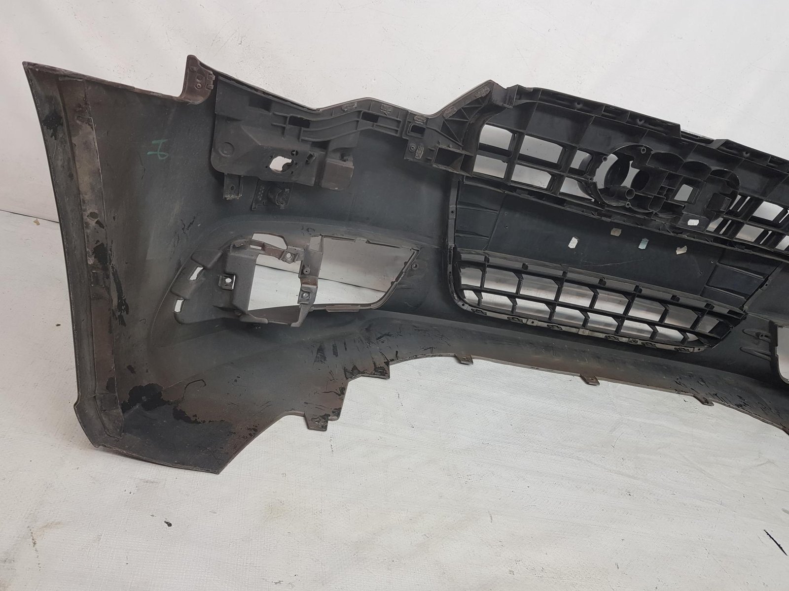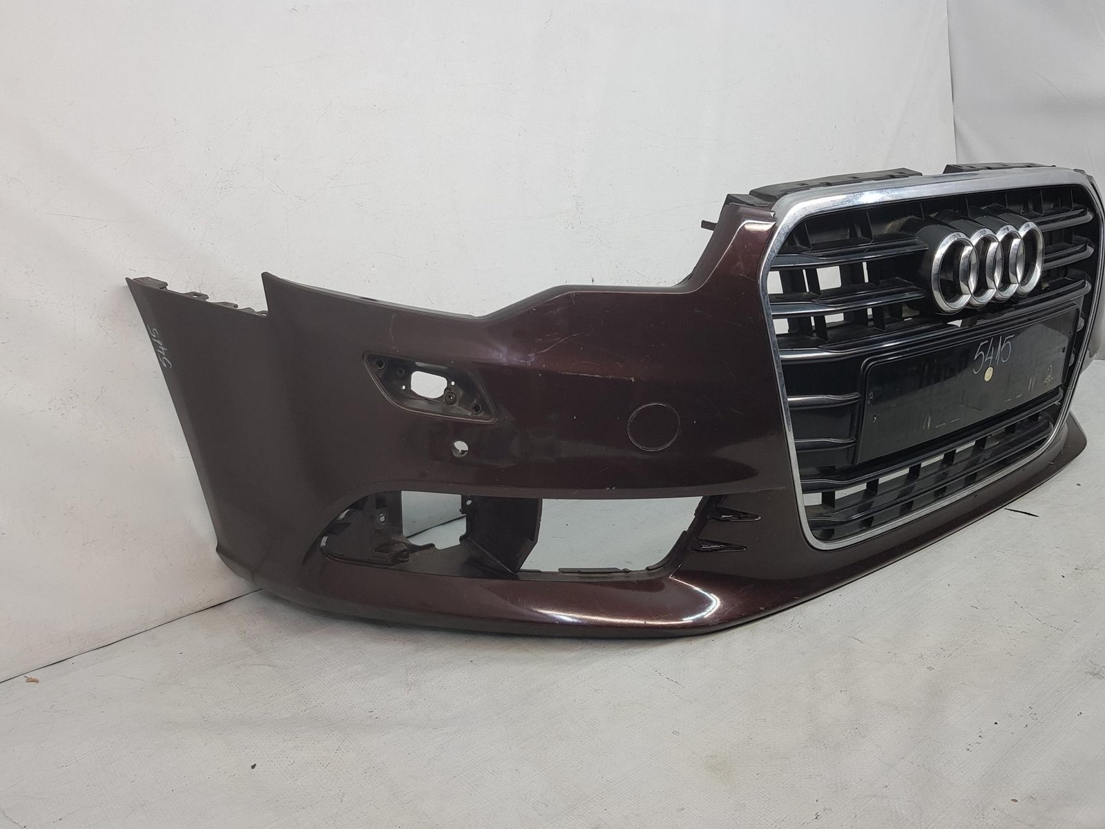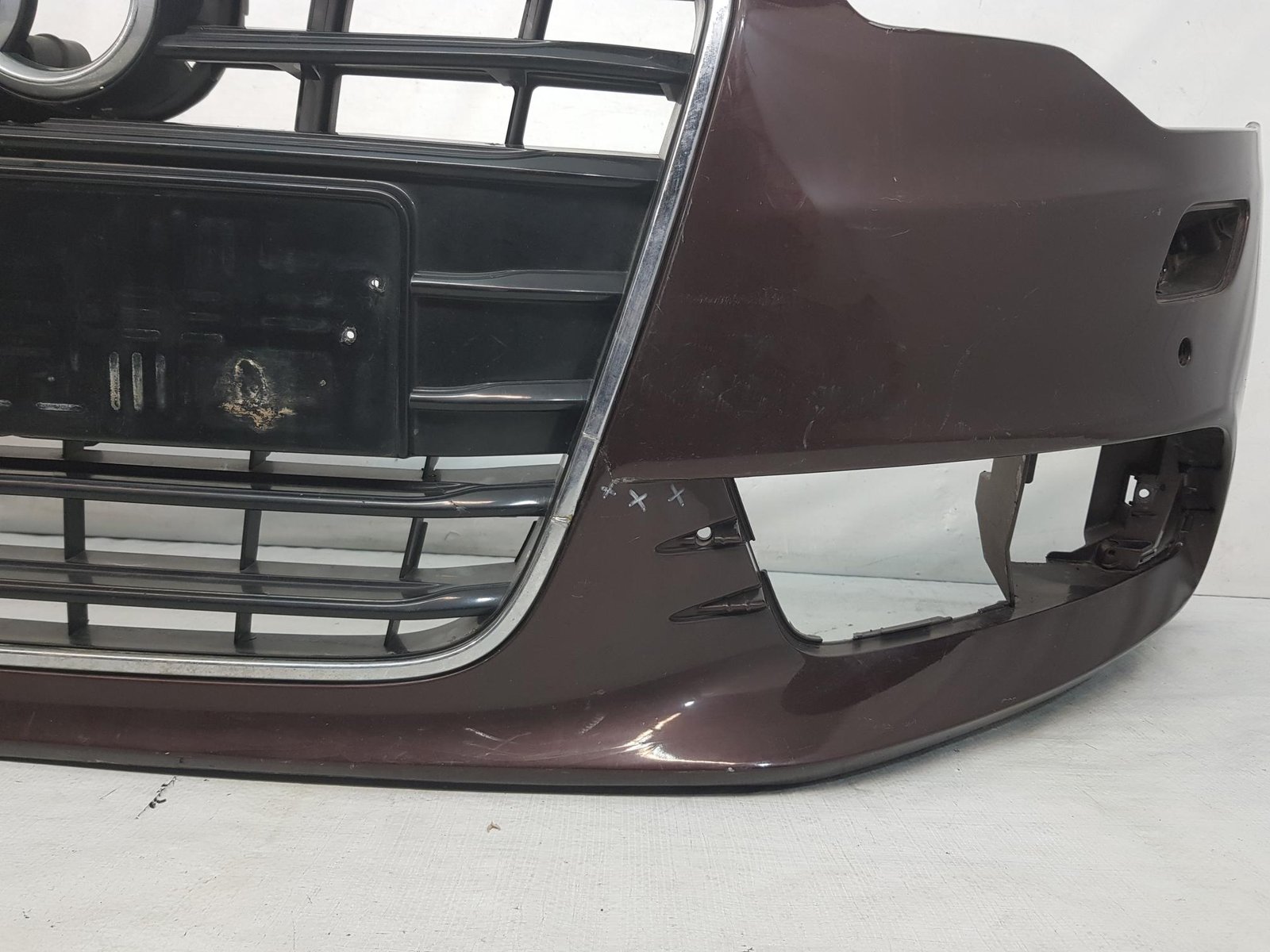 Bara fata Audi A6 4G C7 cod OE 4G0807437 an fab 2011 2012 2013, cu 4 gauri senzori parcare si spalatori far, grila este sparta conform poze, se ofera impreuna cu bara.