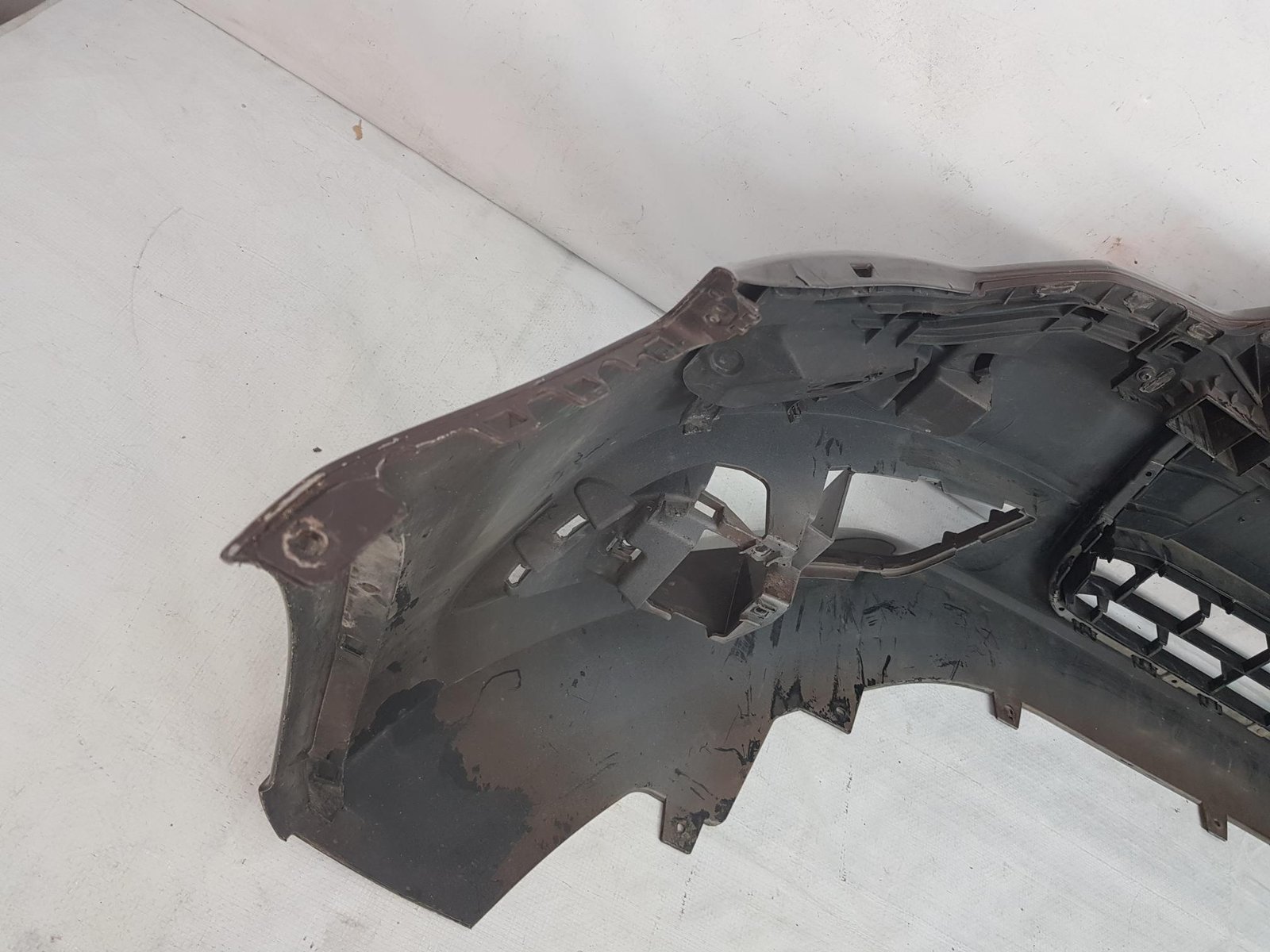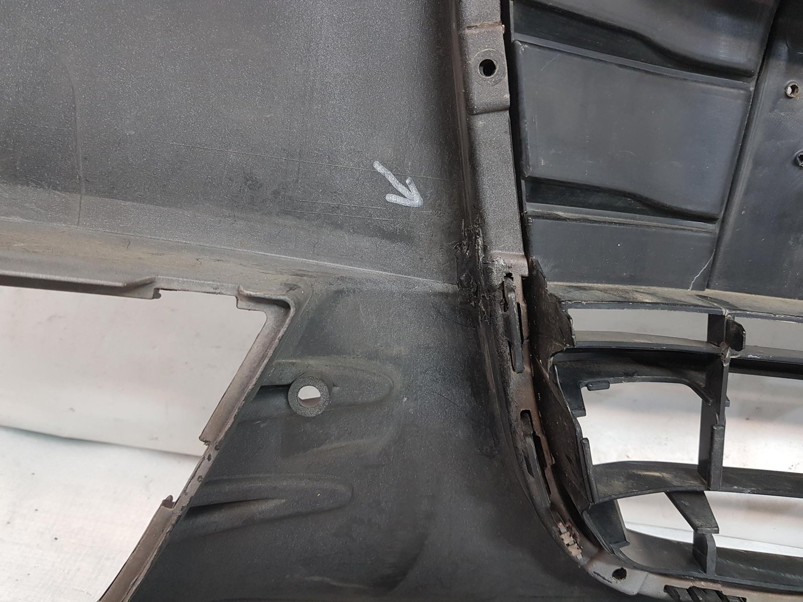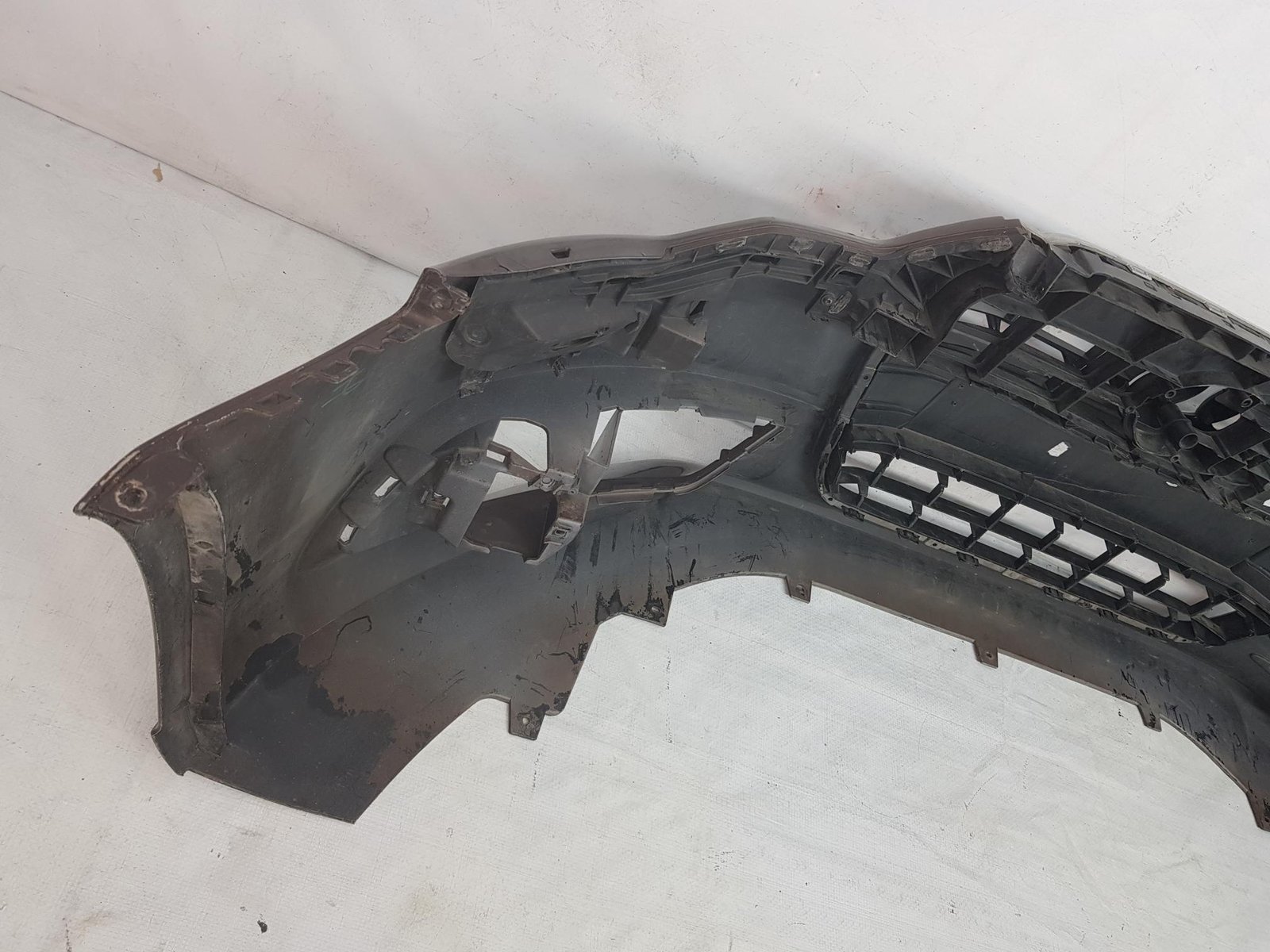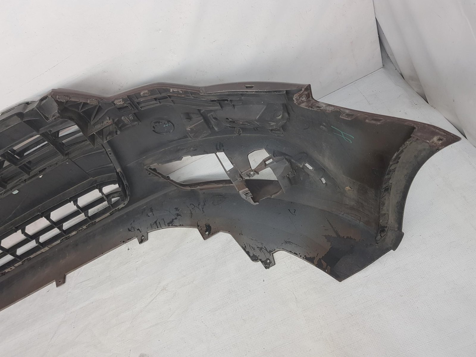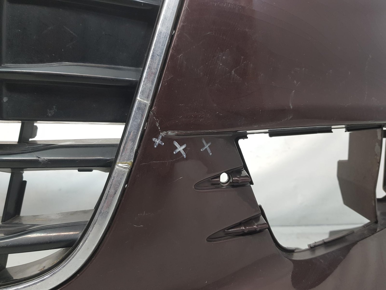 Bara fata Audi A6 4G C7 cod OE 4G0807437 an fab 2011 2012 2013, cu 4 gauri senzori parcare si spalatori far, grila este sparta conform poze, se ofera impreuna cu bara.