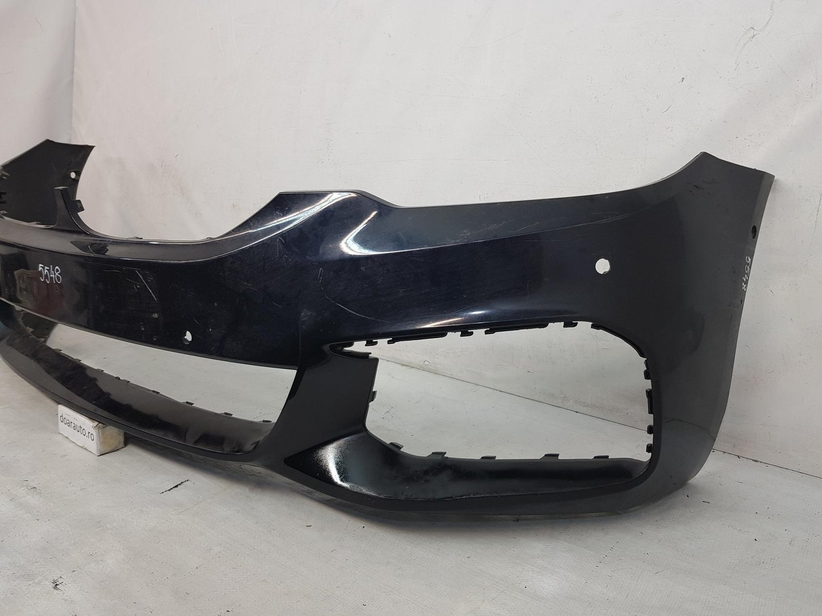 Bara fata BMW Seria 5 G30 G31 M Sport cod OE 51118064928 an fab 2017 2018 2019 2020 , reconditionat in mai multe zone conform poze, cu 6 gauri senzori parcare.