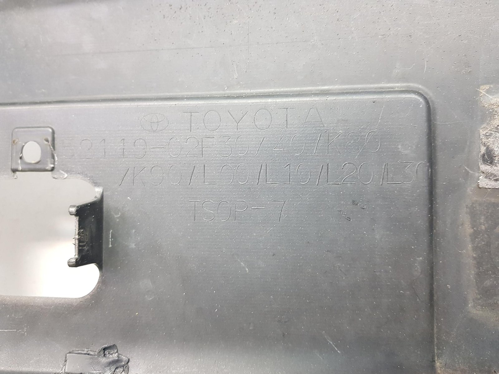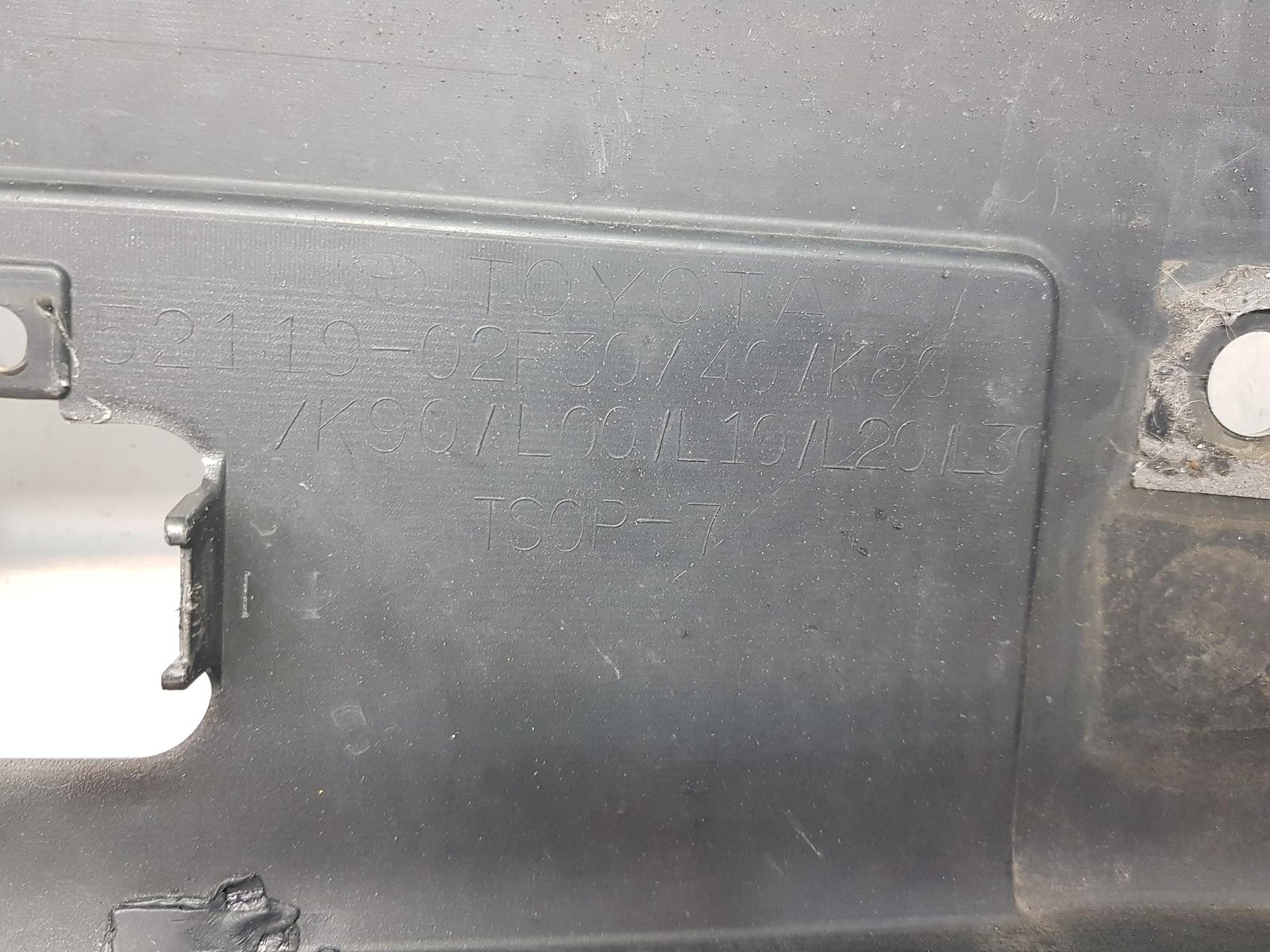 Bara fata Toyota Corolla facelift cod OE 52119-02F30 an fab 2015 2016 2017 2018 2019 , cu 4 gauri senzori parcare, usor reconditionat in centru in zona grilei radiator.
