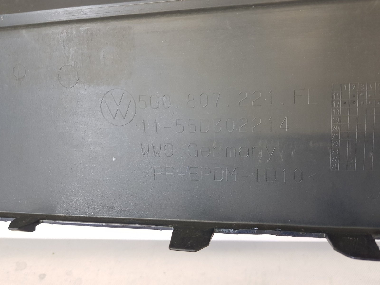 Bara fata Vw Golf 7 facelift cod OE 5G0807221FL an fab 2017 2018 2019 2020, cu 4 gauri senzori parcare si spalatori far.