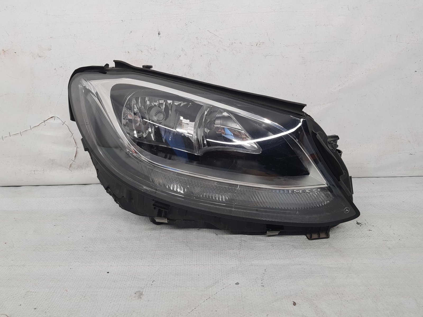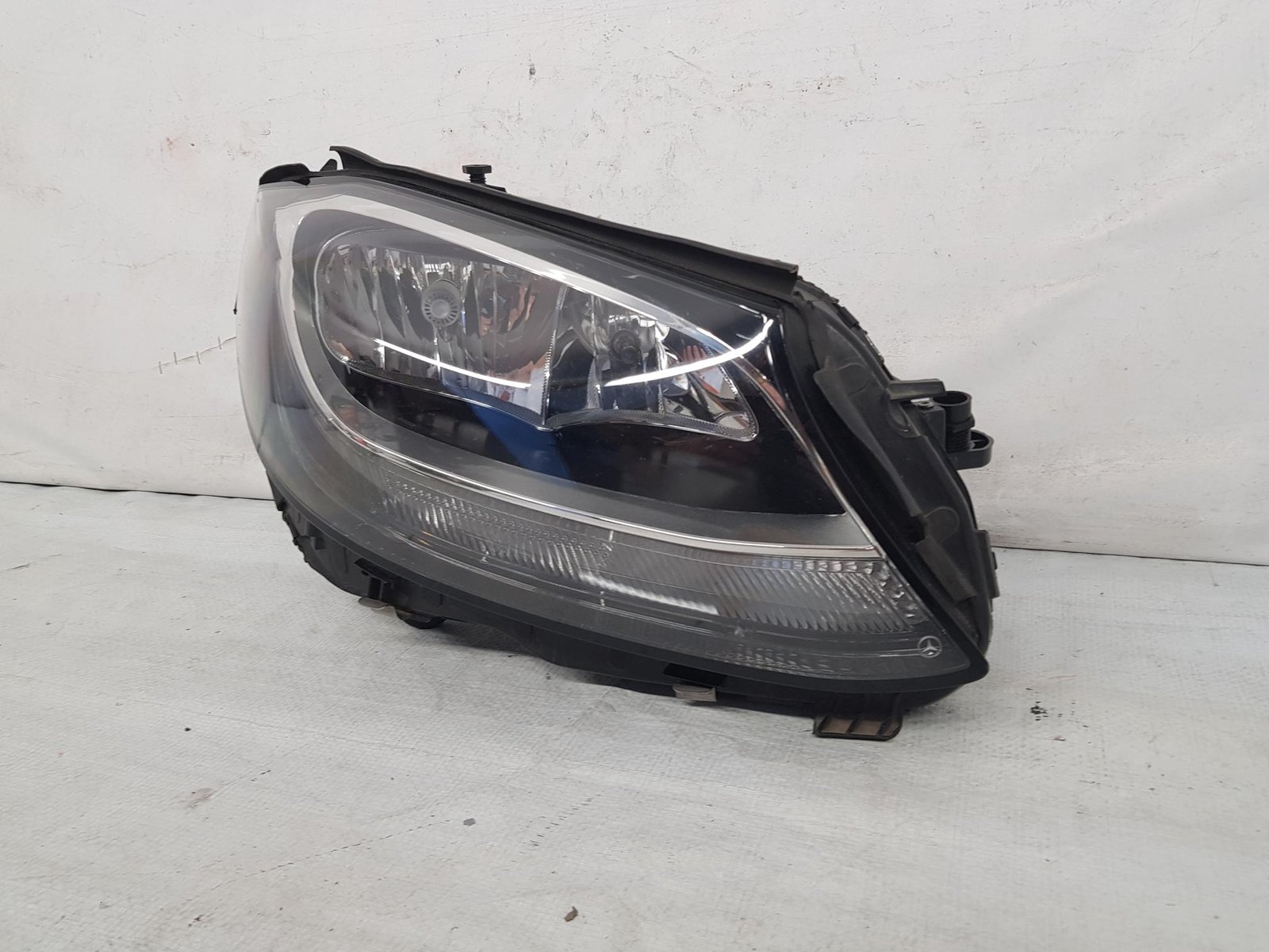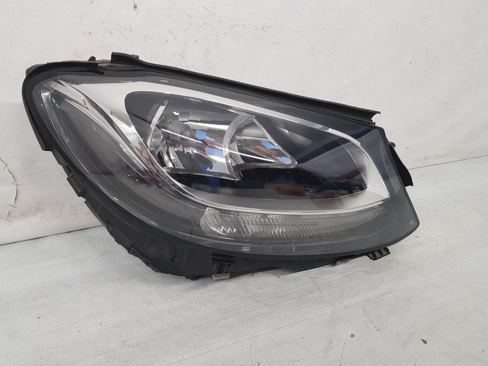 Far dreapta halogen Mercedes C Class W205 an fab 2014 2015 2016 2017 2018 cod OE A2059066502, farul are prinderi reconditionate cu kit de reparatie.