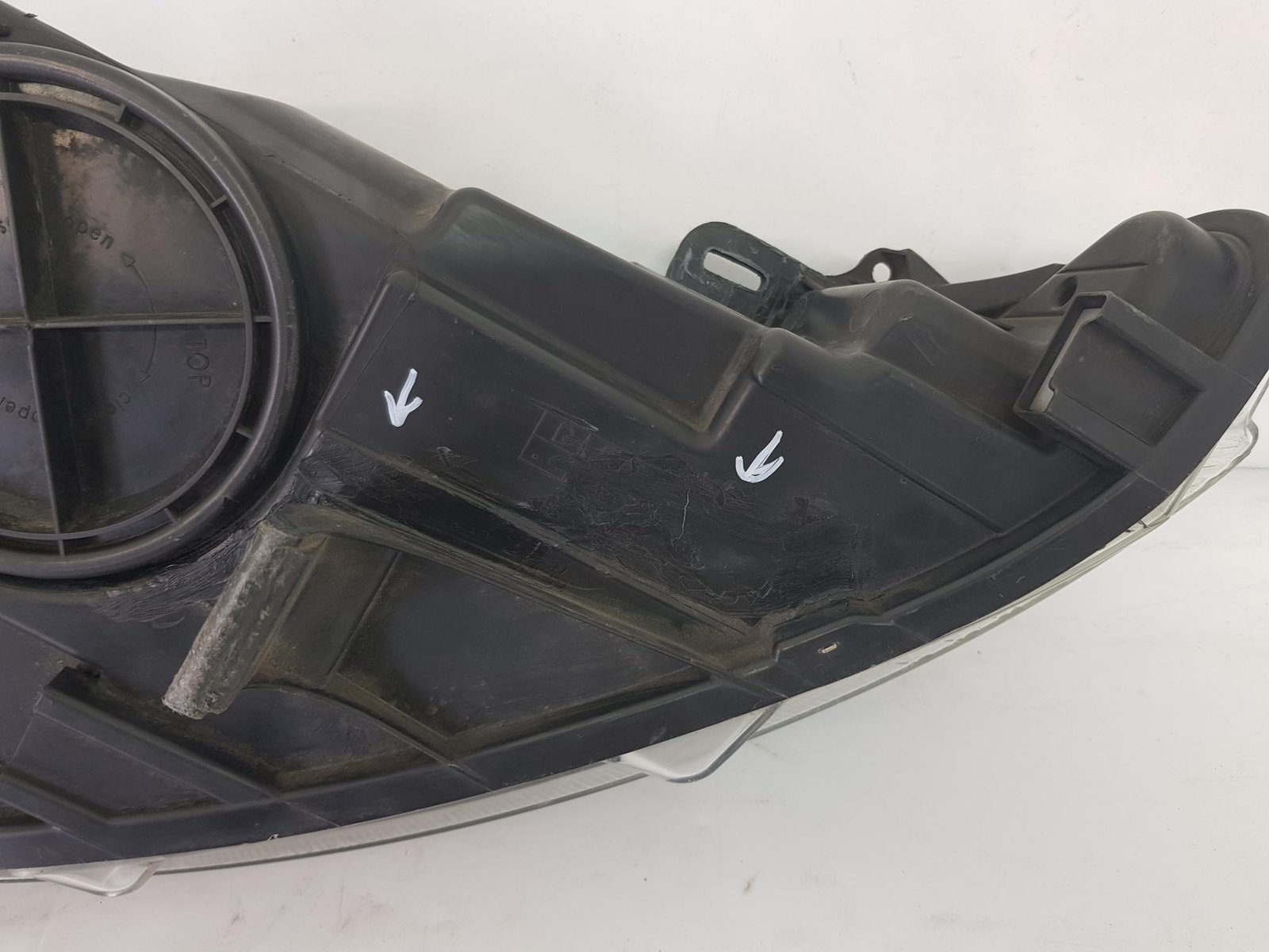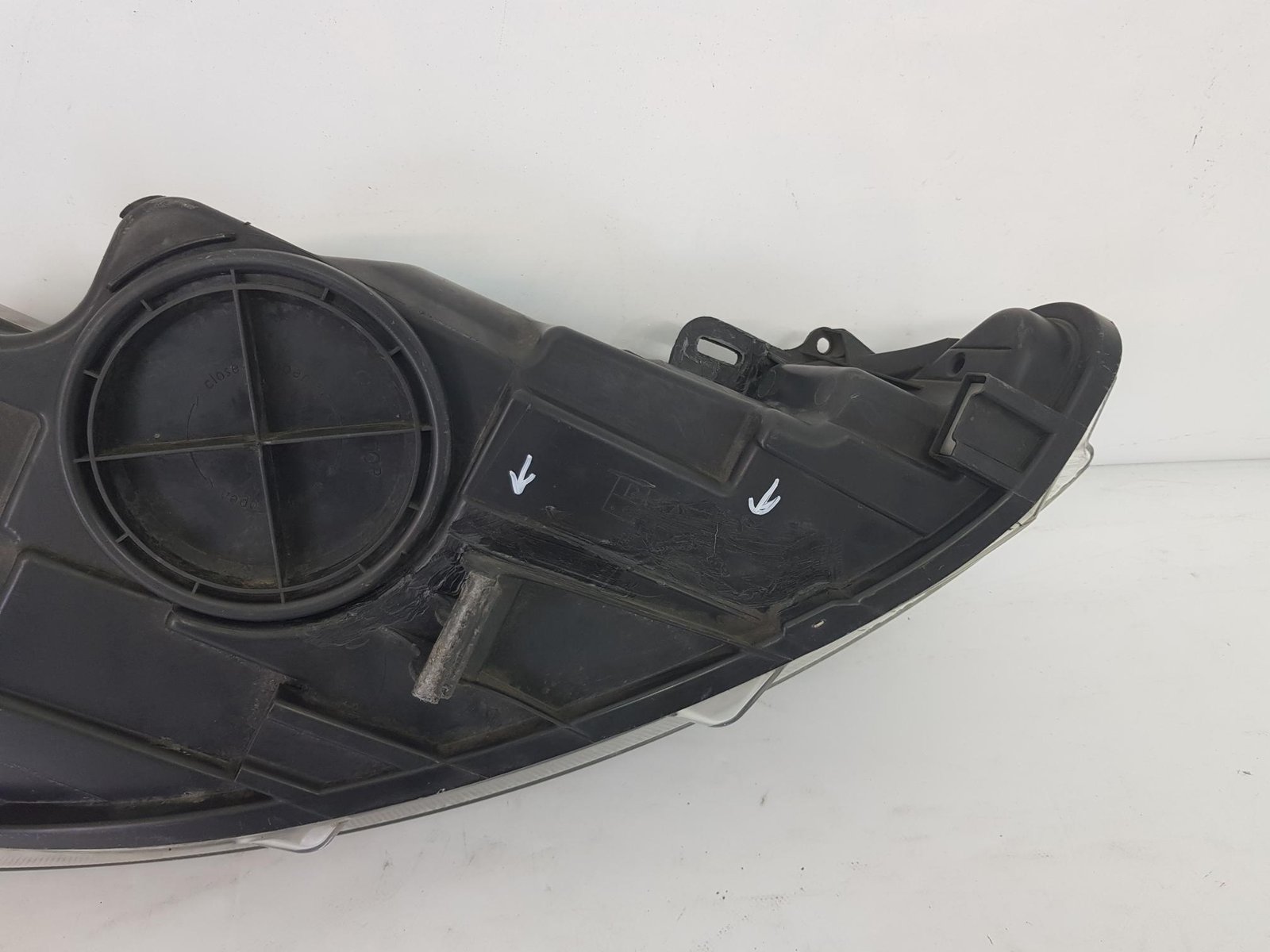 Far stanga Ford Fiesta cod OE 8A61-13W030-AJ an fab 2009 2010 2011 2012 . Farul are o prindere reparata si o fisura reconditionata pe carcasa.